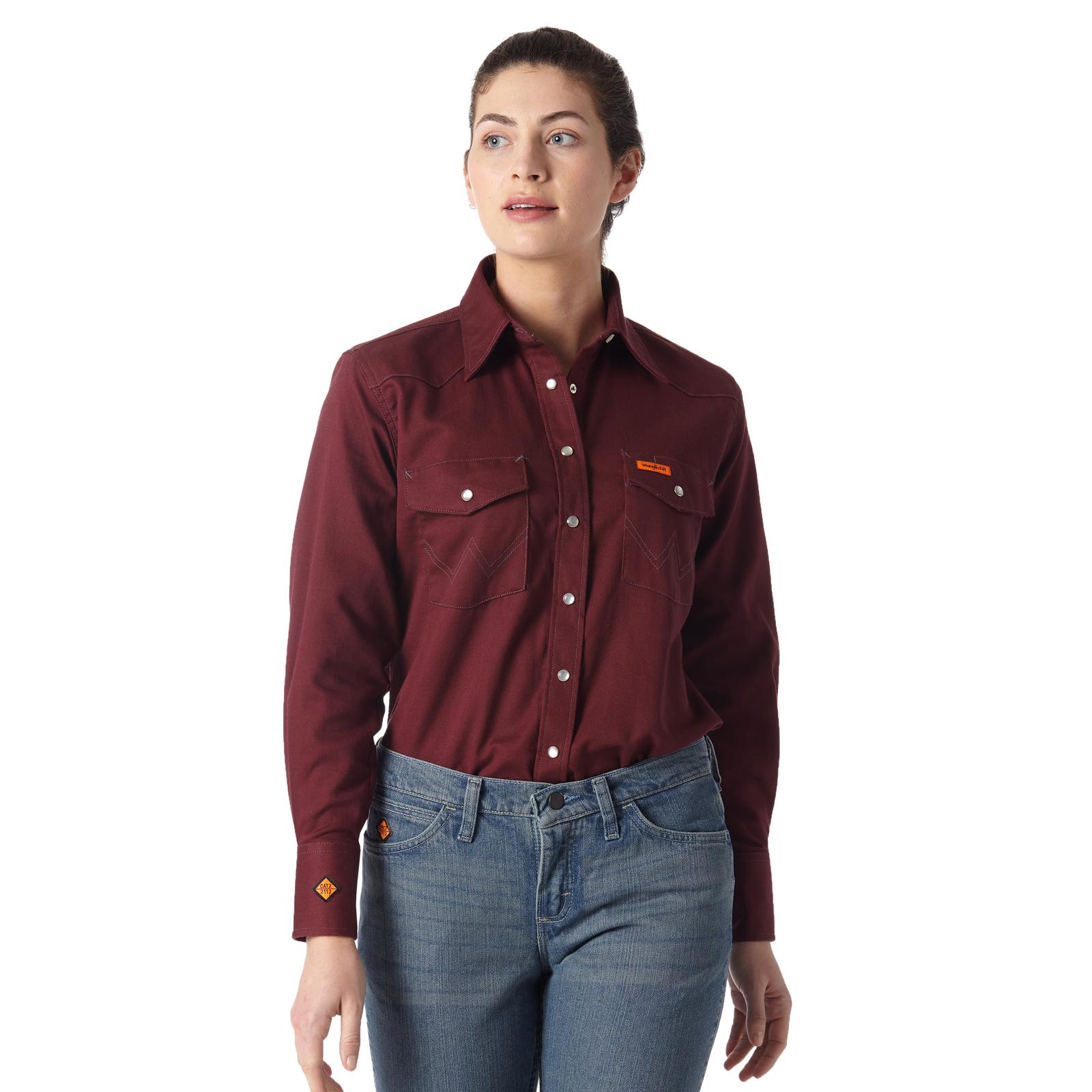 Womens Wrangler® FR Flame Resistant Long Sleeve Shirt – Burgundy